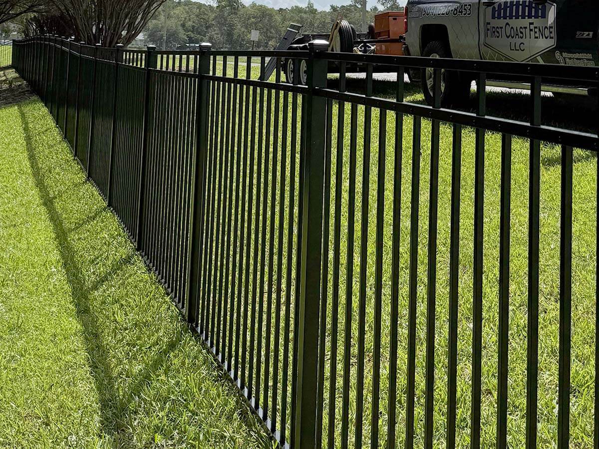 We offer a variety of aluminum fencing styles, including traditional picket, puppy picket, flat-top, and various custom designs. All can be customized to match your aesthetic preferences for your Northeast Florida property.