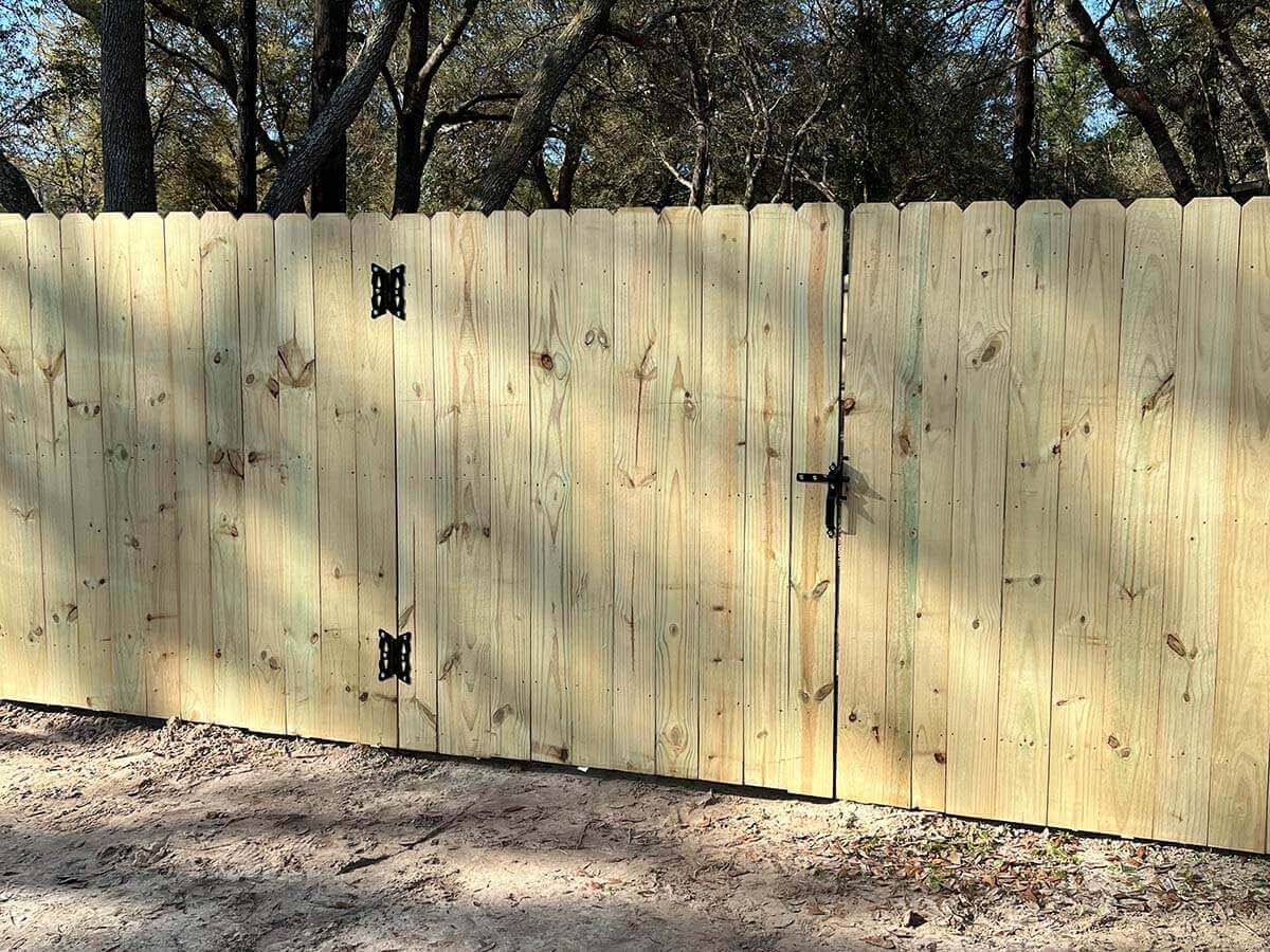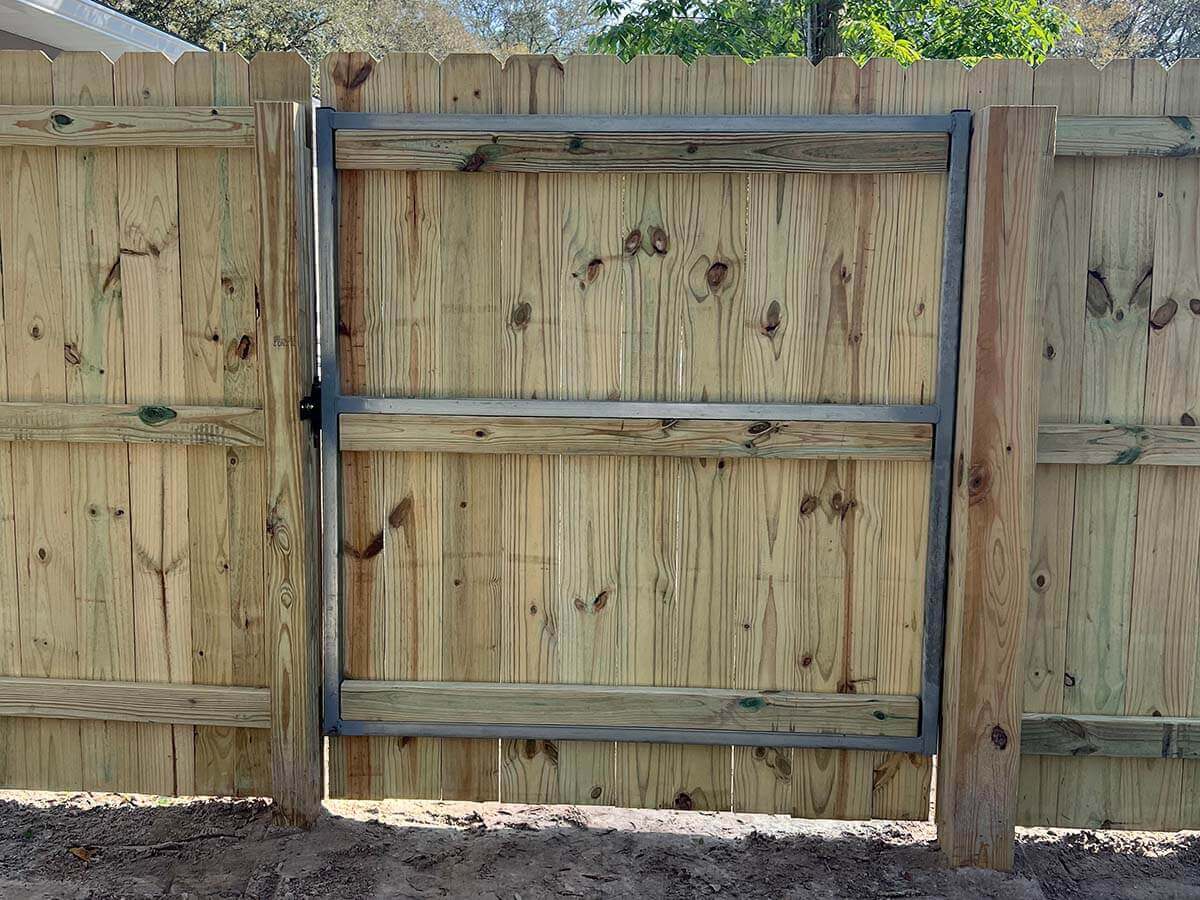 First Coast Fence residential wood gates stand out due to their durable construction and the use of premium materials. Incorporating 6"x6"x10' posts for all 6' tall gates, welded metal frames, and top-tier Nationwide brand hardware, our gates are built for lasting performance and aesthetic appeal, making them a top choice for homeowners.